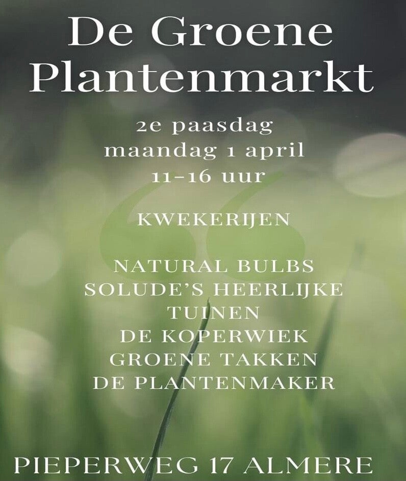 Ben je verhinderd om naar die leuke PlantenMarkt in Almere te komen, of is het weer niet uitnodigend genoeg om naar buiten te gaan. Maar wil je wel graag profiteren van onze leuke Paas acties. Hieronder staan de vijgen van de Paas actie.